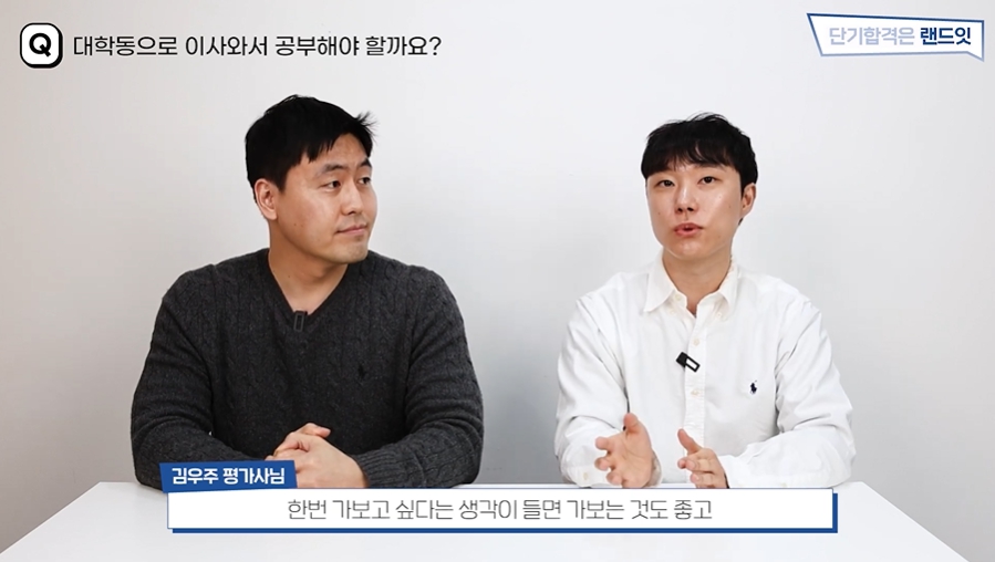 김우주 평가사: 저는 정말 양쪽 모두 장단점이 뚜렷하다고 생각합니다. 대학동에서만 공부해야 합격할 수 있는 건 절대 아니고요.